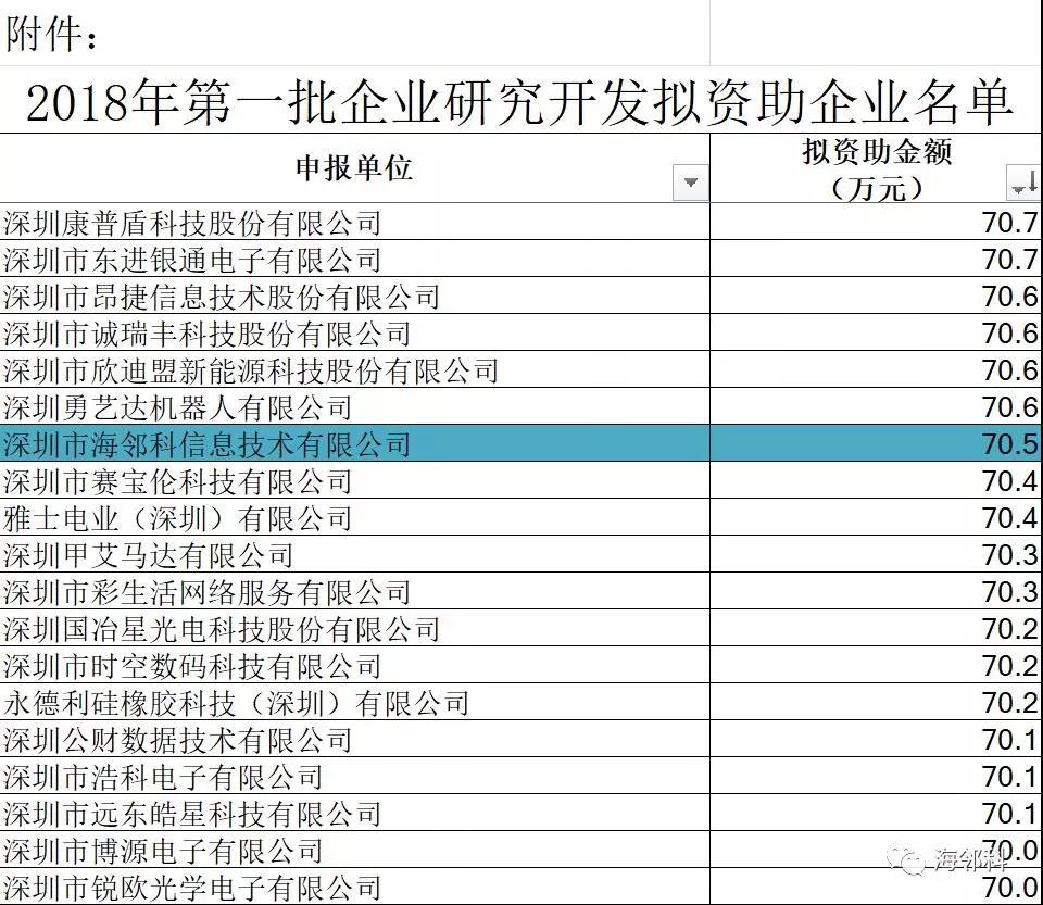 近日,深圳市科技創(chuàng)新委員公布了2018年第一批企業(yè)研究開發(fā)資助計(jì)劃擬資助企業(yè)名單。海鄰科憑借在扎實(shí)的技術(shù)研發(fā)創(chuàng)新和大量的產(chǎn)品成果轉(zhuǎn)化,從層層遴選脫穎而出,獲得了2018年政府“企業(yè)研究開發(fā)資助”的專項(xiàng)資助。