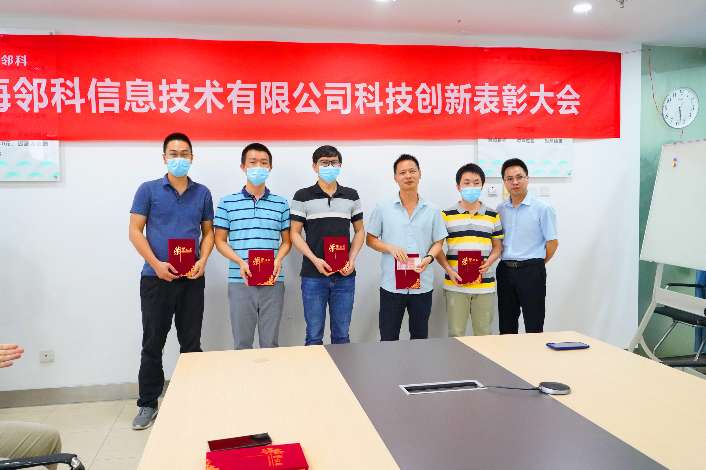 520日下午,海鄰科公司深圳、哈爾濱和西安三地視頻連線,同時舉辦“海鄰科信息技術(shù)有限公司科技創(chuàng)新表彰大會”,對最近連續(xù)獲得4項發(fā)明專利的發(fā)明團隊進行表彰,海鄰科全體員工參會。