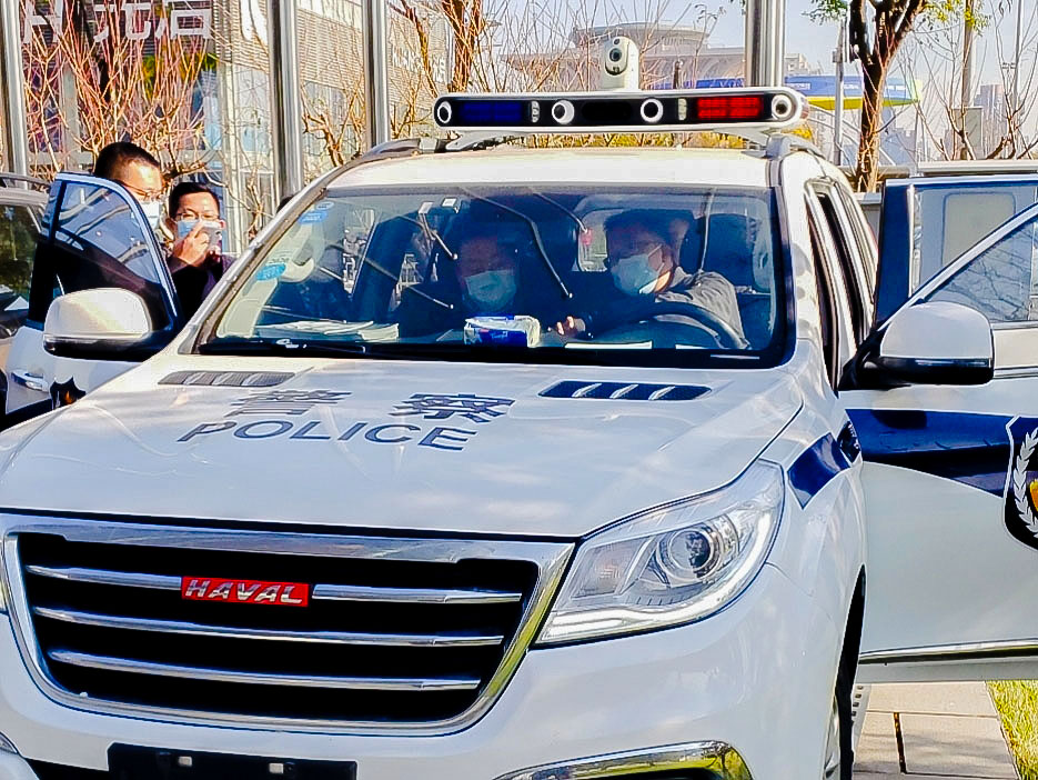 在展覽館外面,全新警車搭配海鄰科5G智慧警車巡控系統(tǒng),新型的車載警務(wù)智能裝備,分外引人注目,同樣吸睛無數(shù),前來參會的客商紛紛登車試駕體驗。