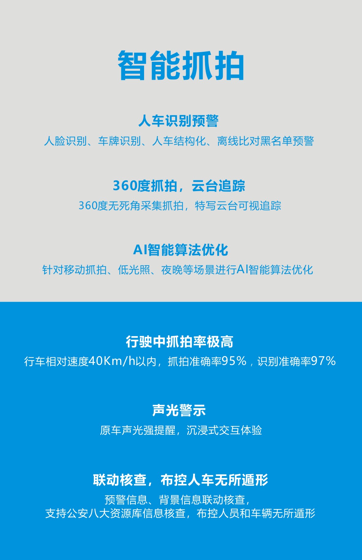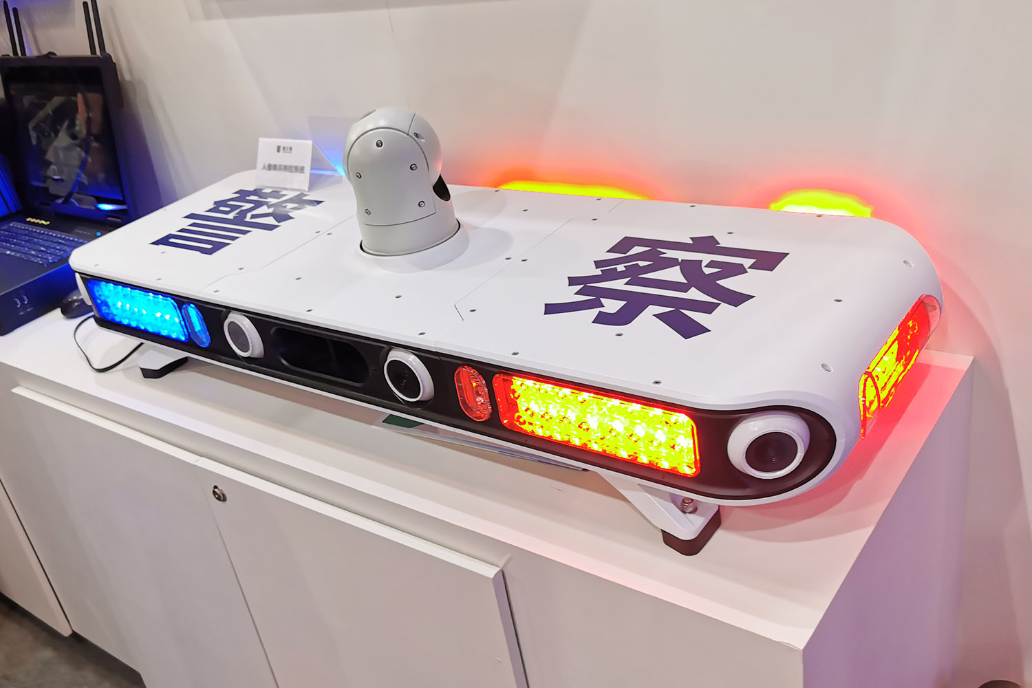 本次展會上,海鄰科創(chuàng)新推出的5G智慧警車巡控系統(tǒng)居于國內(nèi)領(lǐng)先水平,集多功能于一體,通過5G圖文傳輸,具備7路高清視頻采集、人臉識別、車牌識別、人車結(jié)構(gòu)化、離線比對黑名單預(yù)警、360度無死角采集抓拍、特寫云臺可視追蹤、AI智能算法優(yōu)化、原車聲光強提醒、沉浸式交互體驗、抓拍率極高等功能,人車聯(lián)動核查,布控人員和車輛無所遁形。車載抓拍后臺比對實現(xiàn)車載、警務(wù)通預(yù)警,一點預(yù)警多端響應(yīng),支持車車聯(lián)動、人車協(xié)同、信息共享、動態(tài)封控,進行精準打擊。憑借創(chuàng)新高科技多功能、炫酷高顏值的優(yōu)勢,大放警彩,驚艷全場。